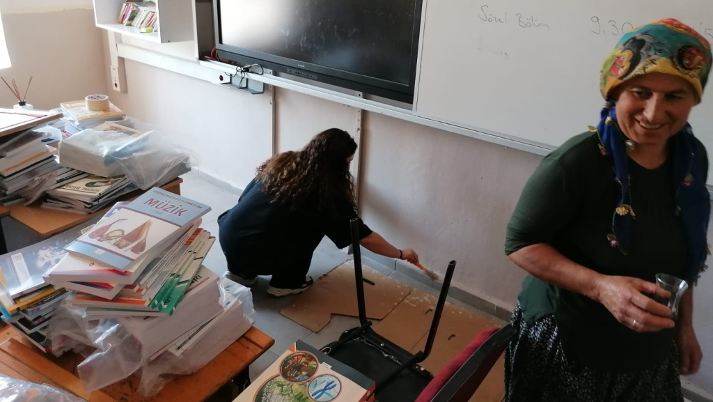 Okulumuz, öğretmenlerimizin gönüllü emeğiyle yeni bir görünüme kavuştu. İl Milli Eğitim Müdürlüğümüzden aldığımız boyalarla, okul müdürümüzün izni ve desteğiyle kolları sıvayan öğretmenlerimiz, sınıflarımızı ve koridorlarımızı el birliğiyle boyadı.